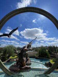 - Flora Taverna – An open-kitchen restaurant with indoor and outdoor seating is open for breakfast, lunch, and dinner. We enjoyed lunch on the patio on our arrival day and overlooked Epic Universe. Their specialty dish is delicious – chicken or beef gyros served in a pita with cucumber, tomato, shaved red onion, and tzatziki.