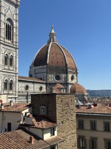 From the port of Livorno, we took a private transfer (90 minutes) into Florence. While exploring Florence on our own, we admired the breathtaking Duomo, walked across the Ponte Vecchio bridge, sipped espresso at the counter of the gorgeous Caffe Gilli (Florence’s oldest café), stopped for a glass of wine at one of Florence’s famous wine windows, indulged in wood-fired pizza at Il Pacchero, and shopped for leather bags at the numerous leather shops throughout the city. Florence never fails to impress. It is a must for art and history lovers with the Uffizi Gallery and Accademia Gallery, which houses Michaelangelo’s Statue of David. It is interesting to note that there are numerous replicas of the Statue of David in Florence including a full-sized one in the Palazzo Vecchio. Sipping an Aperol Spritz at a rooftop café overlooking the Duomo was a highlight of this day!
